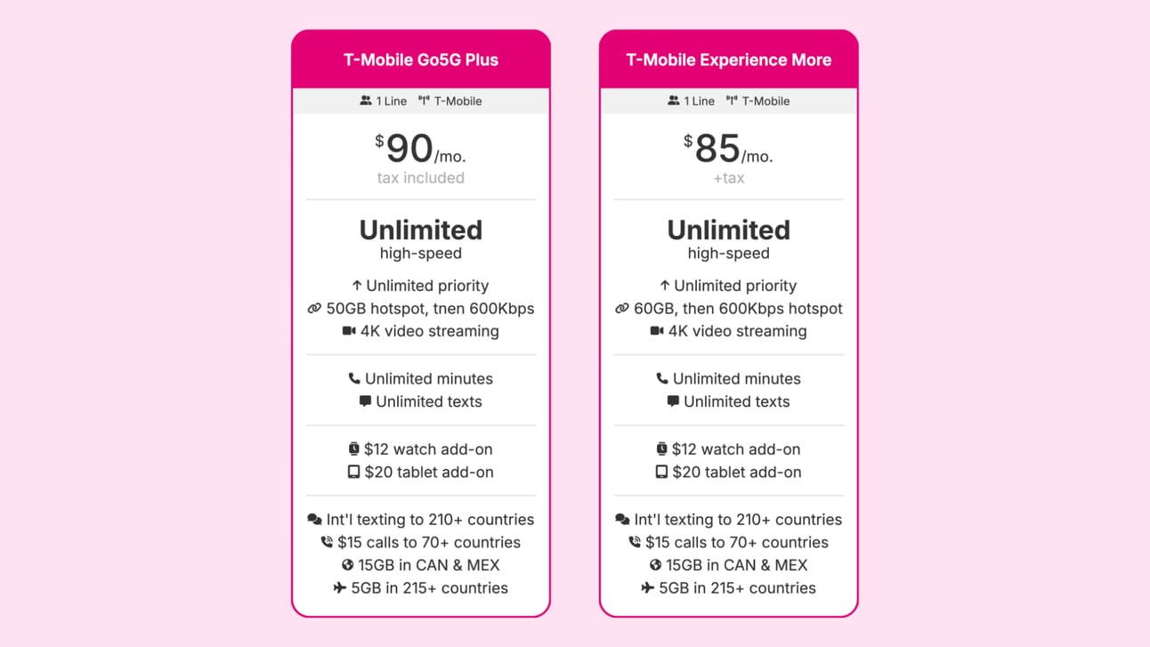 Go5G Plus (taxes & fees included) | Experience More (list price) | Experience More (after tax, estimate) | |