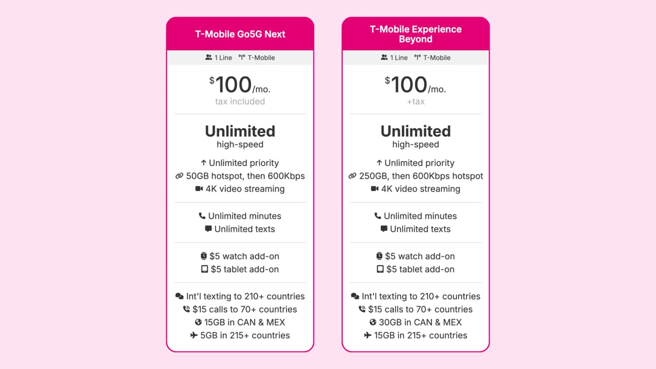 Go5G Next (taxes & fees included) | Experience Beyond (list price) | Experience Beyond (after tax, estimate) | |